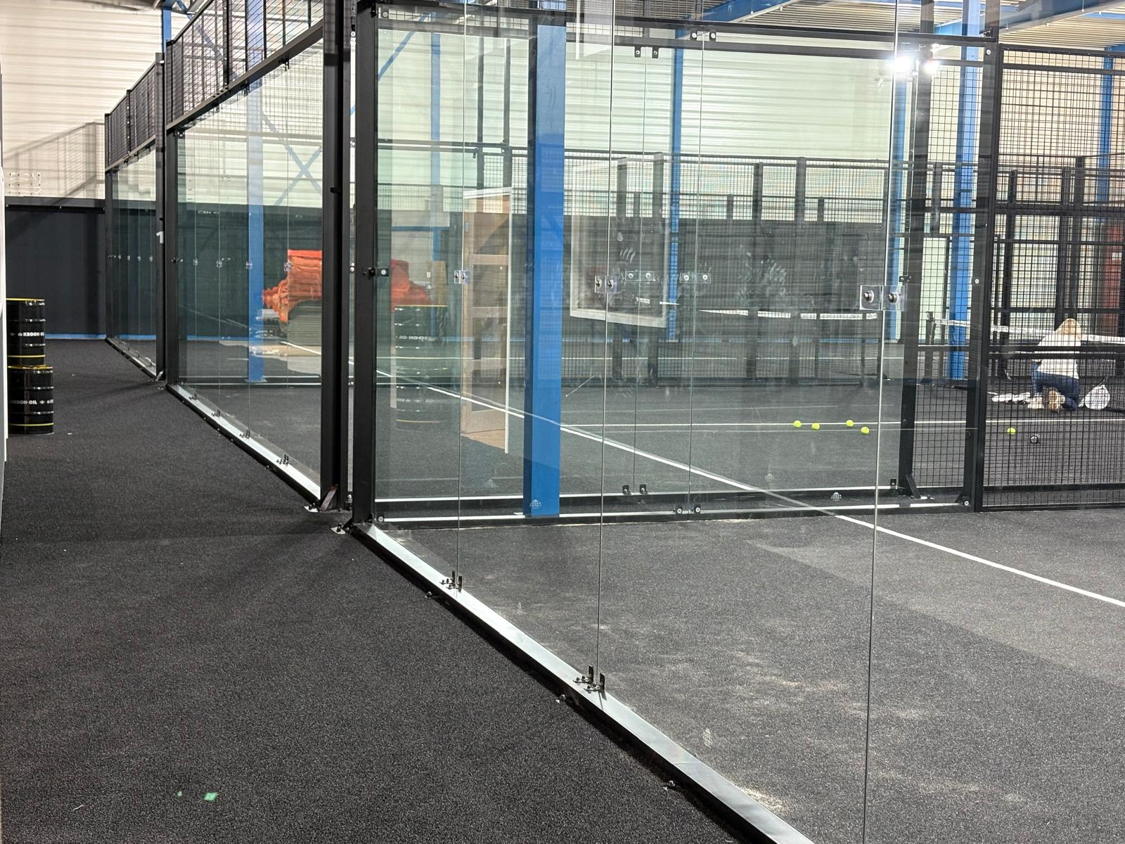 Im Mittelpunkt standen drei High-End Panorama Padelplätze in einer konsequenten Black-on-Black-Ausführung, bei der Konstruktion, Matten und Details vollständig in Schwarz gehalten sind. Das Ergebnis ist eine elegante, ruhige und hochwertige Spielumgebung mit starker Ausstrahlung.